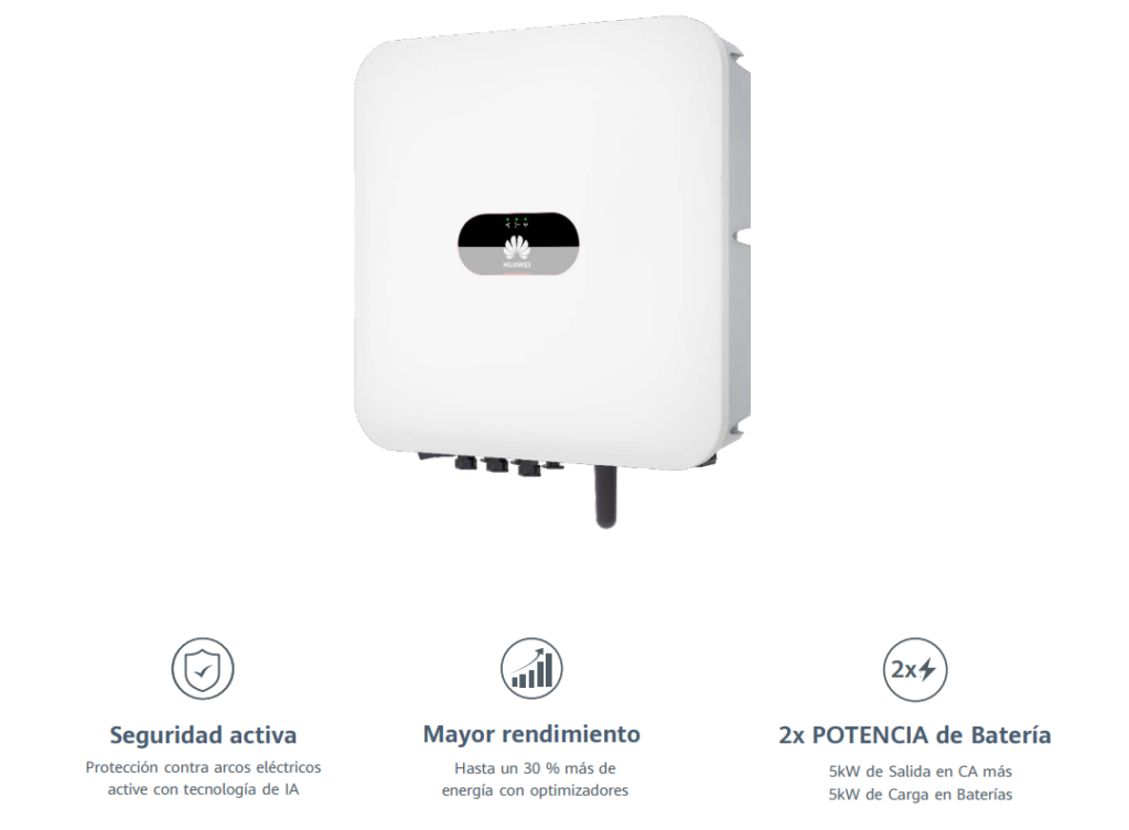 • Compatible con baterías Huawei LUNA2000 para sistemas híbridos